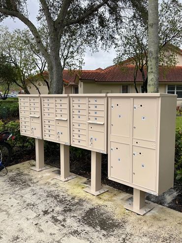 We have all your commercial mailbox needs covered, from repairing broken mailbox doors, locks and hinges, to replacing complete mailbox units. We will coordinate with the United States Post Office to change out your existing mailboxes and make sure they meet the current Post Office standards and specifications. Please contact us for more information